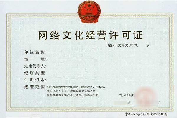 網(wǎng)絡(luò)文化經(jīng)營許可證
